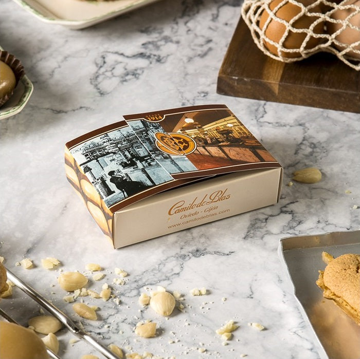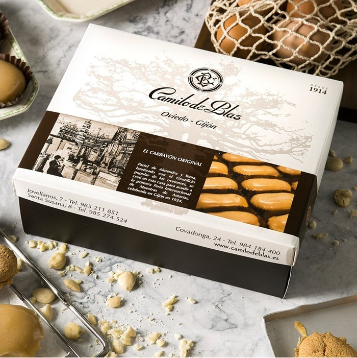 Creados en Gijón en 1924, los Carbayones se han convertido en uno de los pasteles más emblemáticos de la repostería tradicional asturiana. Elaborados con una base de hojaldre cubierta de una crema artesana de almendra Marcona, bañados en una capa de yema y terminados con un baño de azúcar que les aporta el aspecto brillante y el sabor crujiente. ¡Toda una delicia!